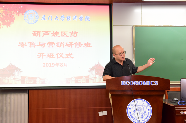 在开班仪式上,廖景峰主任首先代表厦门大学经济学院热烈欢迎z6mg人生就是博医药零售与营销研修班的学员到厦大学习,并就厦门大学及经济学院的相关情况进行了介绍。他说,z6mg人生就是博学员走进厦大就是厦大的校友,希望未来的日子能够关心、支持母校的发展,多提宝贵意见,同时他也祝大家在厦大学习期间学有所成、学有所获。